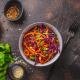 · Serve the veg and noodles in a deep bowl, top with the just cooked salmon and spoon over the last ¼ of the sauce.