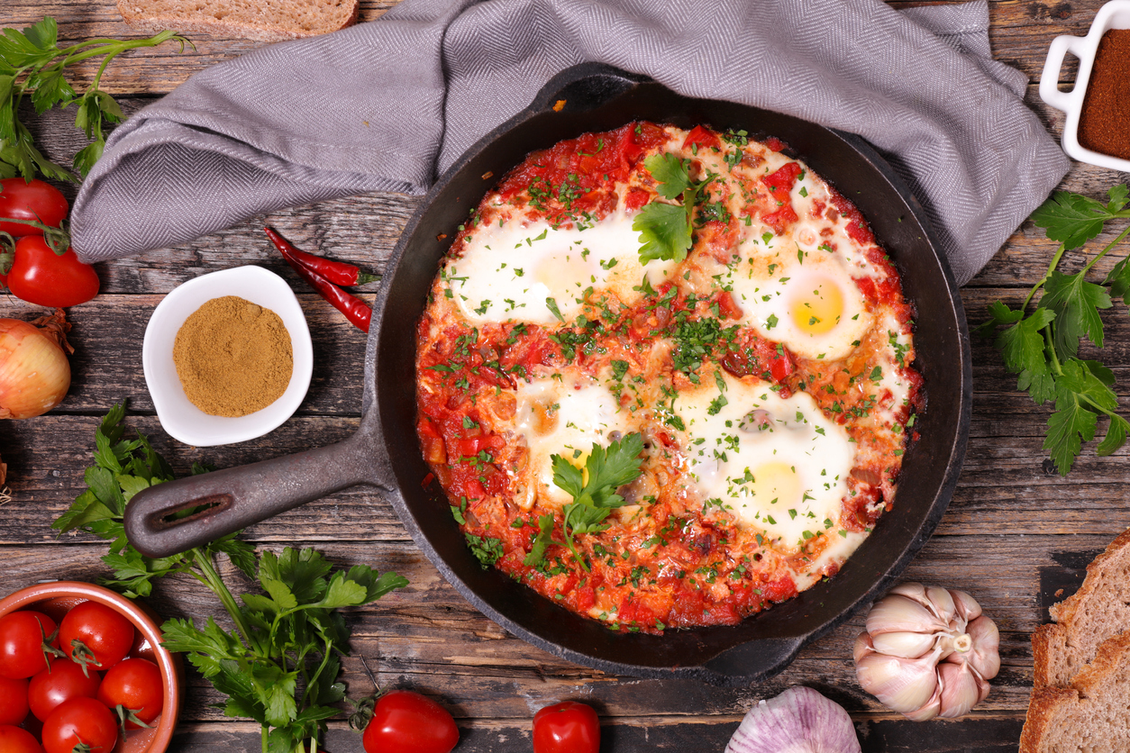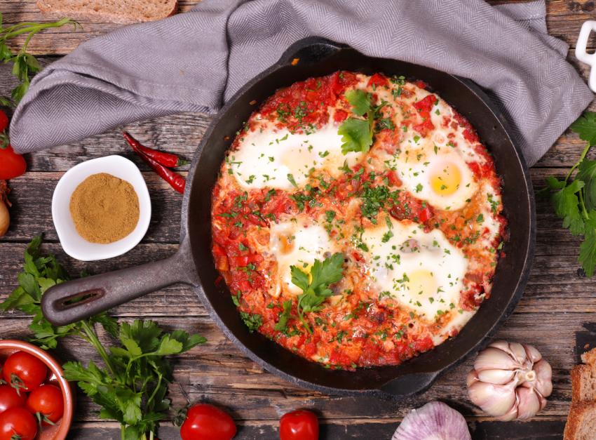 I have a special cast iron pan for shakshuka but you can use any flat bottomed pan or frying pan.