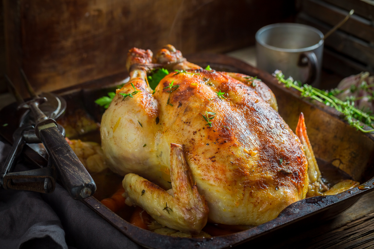 - To check to see if the chicken is done, either insert a knife into the leg joint to see if the juices run clear, or use a meat thermometer.