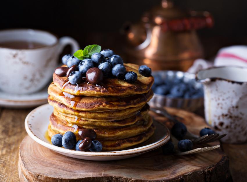 Heat the blueberries before you cook the pancakes. Place the washed blueberries in a heavy bottomed pan over a low heat with the maple syrup. Heat gently until the blueberries begin to pop and release their juice.