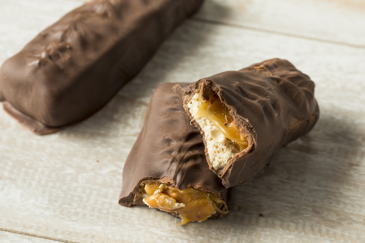 Remove the bars from the freezer. Place the trays on parchment paper (to catch the chocolate drips). If you’re adding nuts to each bar spread 1 or 2 on top of the caramel and press down slightly. Cover with chocolate, scraping up any chocolate that lands on the baking parchment and reusing it. It’s a messy job so be prepared.