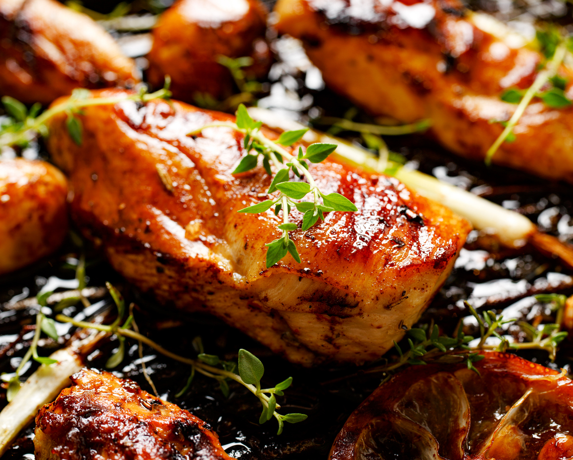 - Heat a griddle pan or large frying pan until hot and, on medium heat, cook the chicken pieces for about 4-5 minutes on one side until golden. Turn them over and cook for a further 3-4 minutes on the other side