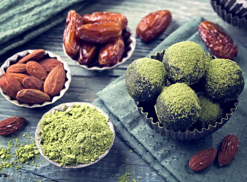I got into Matcha last year after discovering Matcha Latte (made with almond or coconut milk). It made a refreshing change from peppermint tea when I wanted a warm drink that felt more indulgent than a herbal tea. Having given up caffeine 4 years ago I don’t miss the taste or the ritual of it (or the headaches I used to suffer) but I do sometimes miss the warmth of a creamy drink. These protein balls are my homage to Matcha – I now cook with it all the time – from cookies to overnight oats I can’t get enough of it! Packed with antioxidants matcha is considered a super food and this 'ceremonial