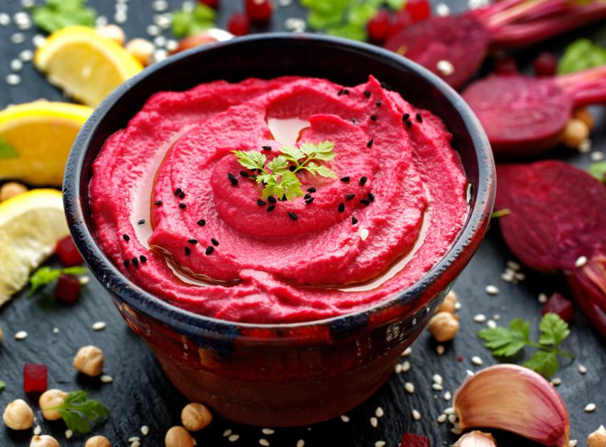 I love beetroot but no one else in the Hutchinson house will touch it. I’ve tried adding it to smoothies, chocolate brownies, soups but they still detect it so I’ve now given up and have to eat a whole bunch to myself. Shame! This beetroot hummus recipe came out of necessity. I had cooked some beetroot that had arrived in our organic box but had far more than I needed so was wondering what to do with it. Making a batch of hummus for the following week is often a weekend task so I just put the two together and hey presto you have the most delicious, amazing coloured hummus you can imagine