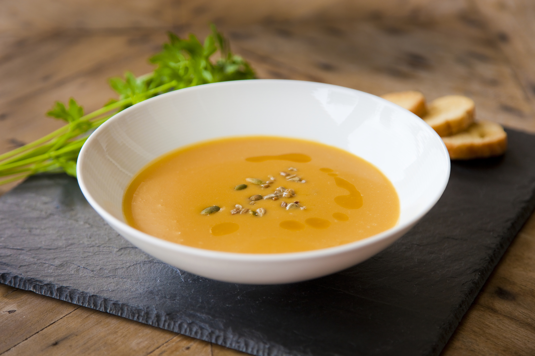 I love hearty soups especially in the winter. I usually order a squash box at the beginning of the season from Riverford Organic Farms and they will last me for months. I store them in a cold dark place (the garage works for me) and they seem to last and last. Butternut squash are always in plentiful supply in our organic box too so I often use just them as the basis of a great soup. Here you can combine other squash or pumpkin varieties too.