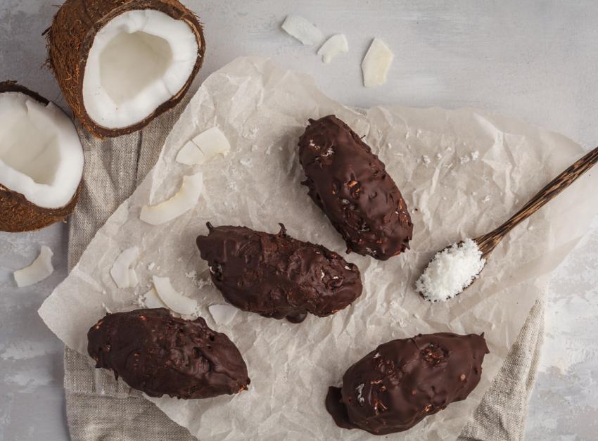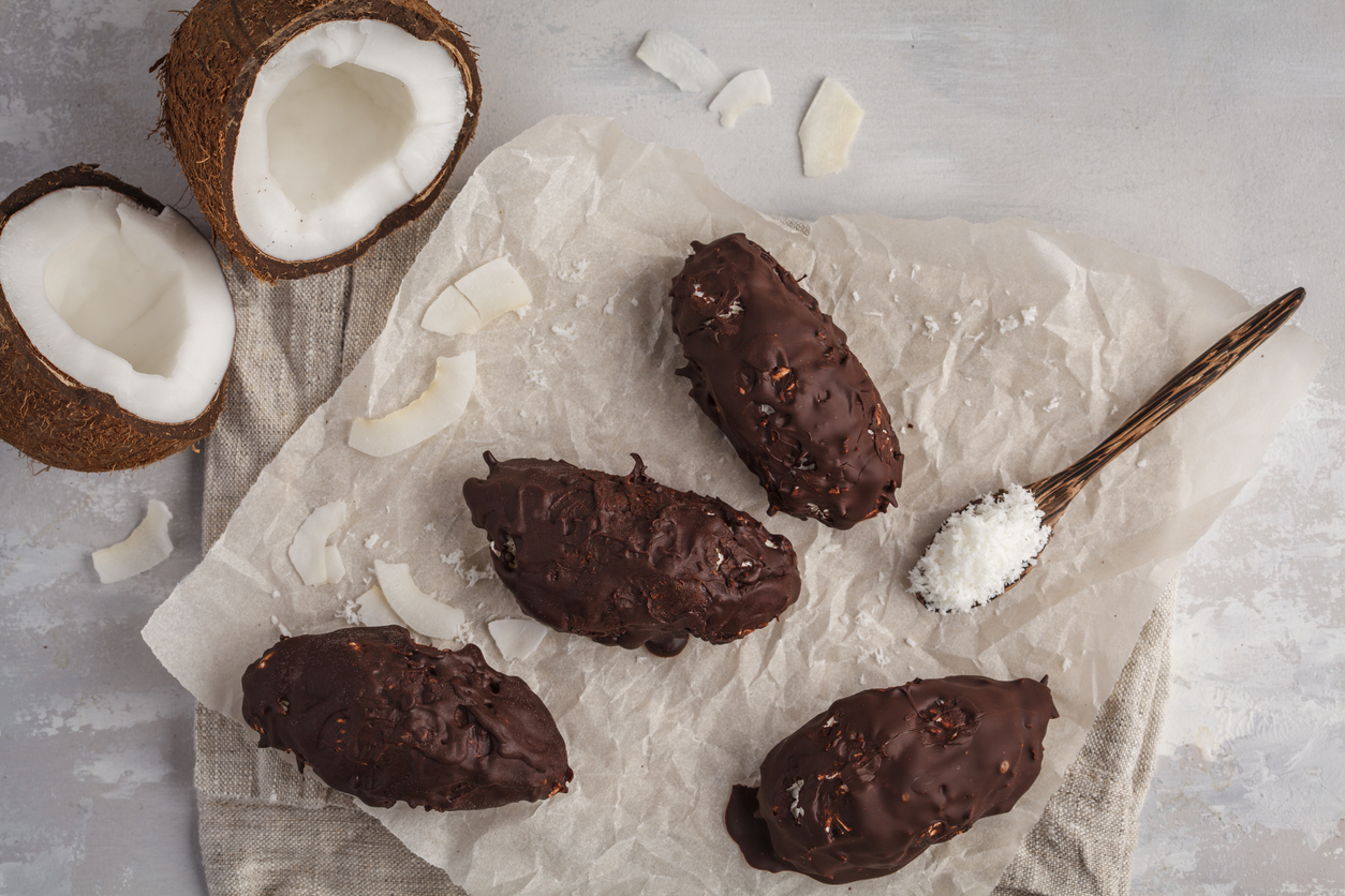 Remove the bars from the freezer and dip each bar into the chocolate until it is coated. You can do this all in one go allowing one side to dry before placing on a wire rack to dry completely or dip half the bar and place coconut side down, chocolate side up to dry before repeating the process on the other side. Ensure the whole bar is coated and return to the freezer to set completely. Store in an airtight container in the freezer where they will keep for up to a month Enjoy!